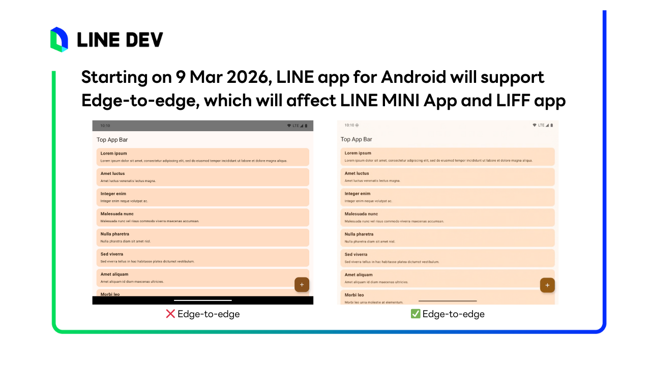 ตั้งแต่ 9 มี.ค นี้ LINE สำหรับ Android จะรองรับ Edge-to-edge ส่งผลกับ layout ของ LINE MINI App และ LIFF app